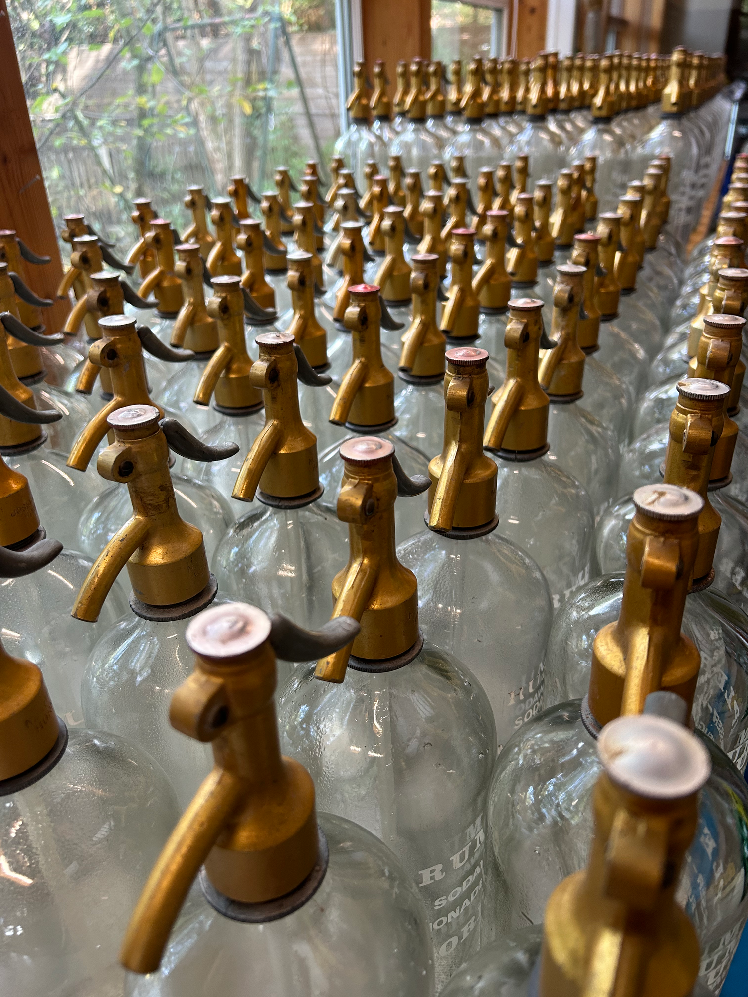 Die Sodawasserflaschen stammen aus einer aufgelassenen Fabrik im Burgenland.